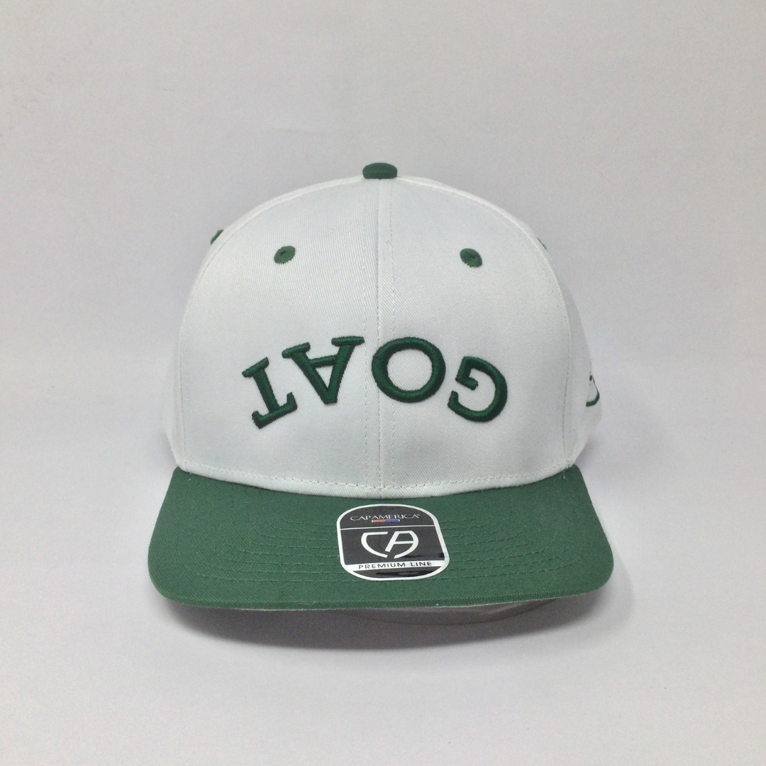 Upside down embroidered 'GOAT' on front | NUCLR emblem on side